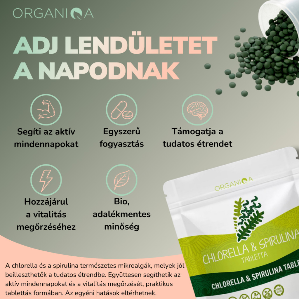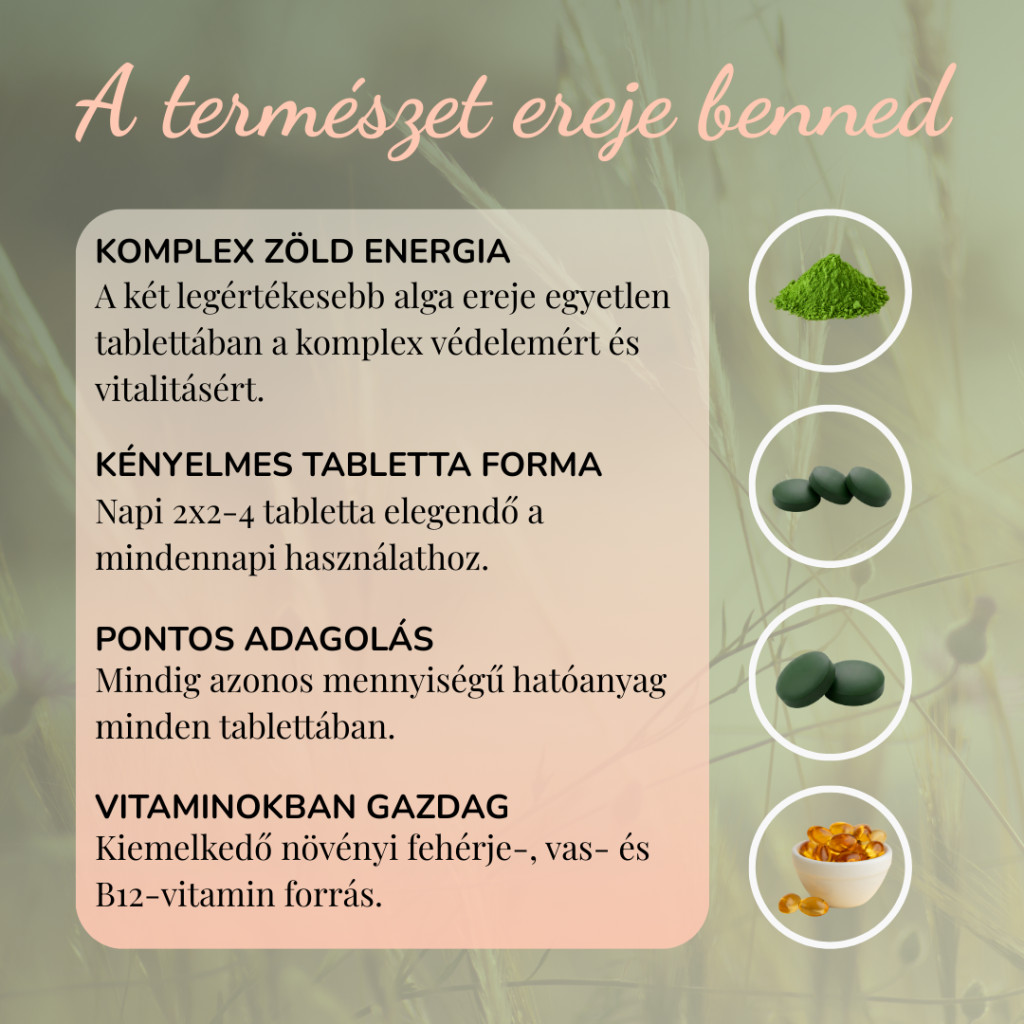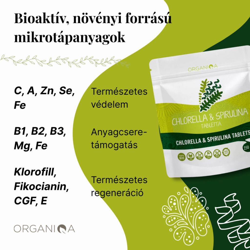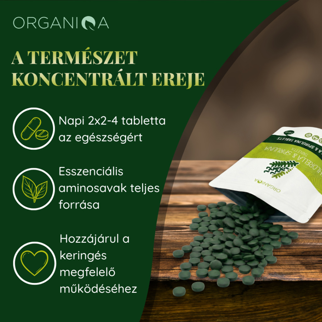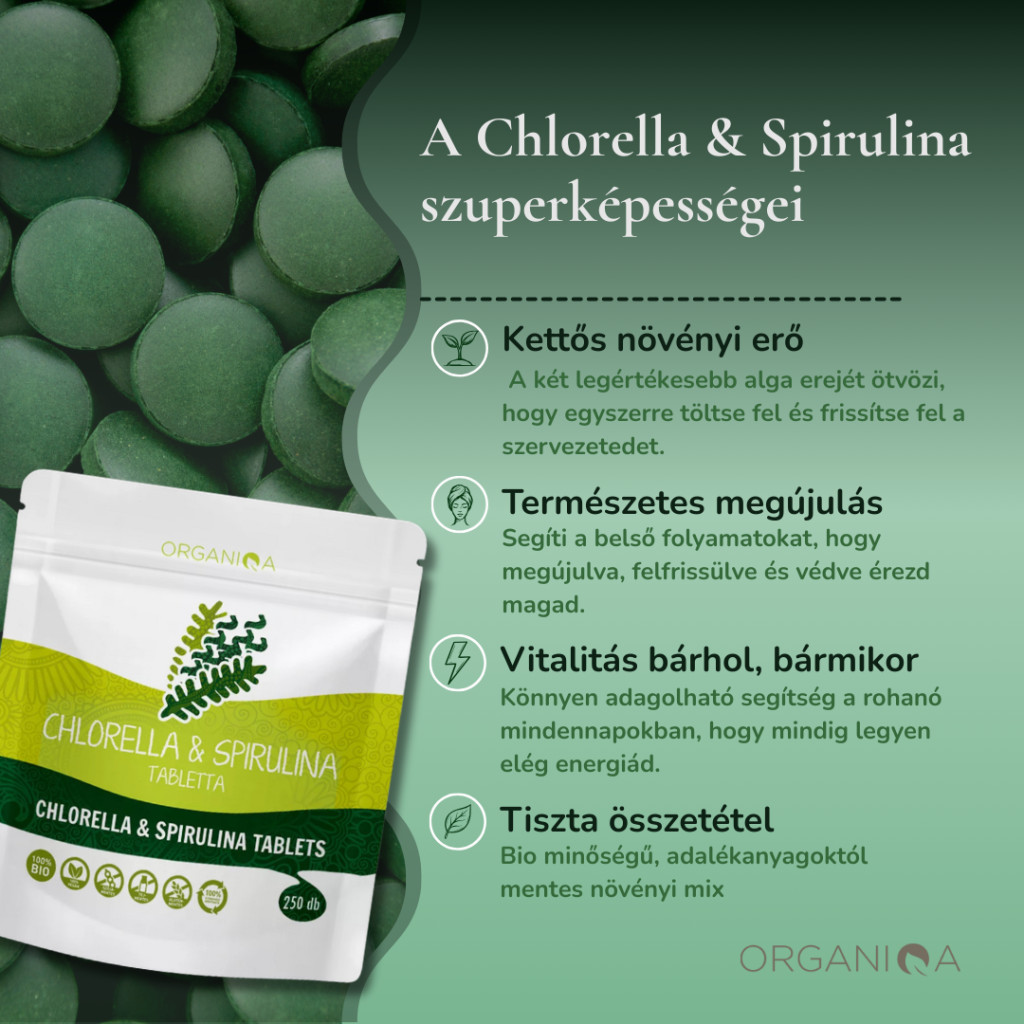 100% bio spirulina por és 100% bio chlorella por 1:1 arányú keveréke - nincs benne semmilyen hozzáadott segédanyag.