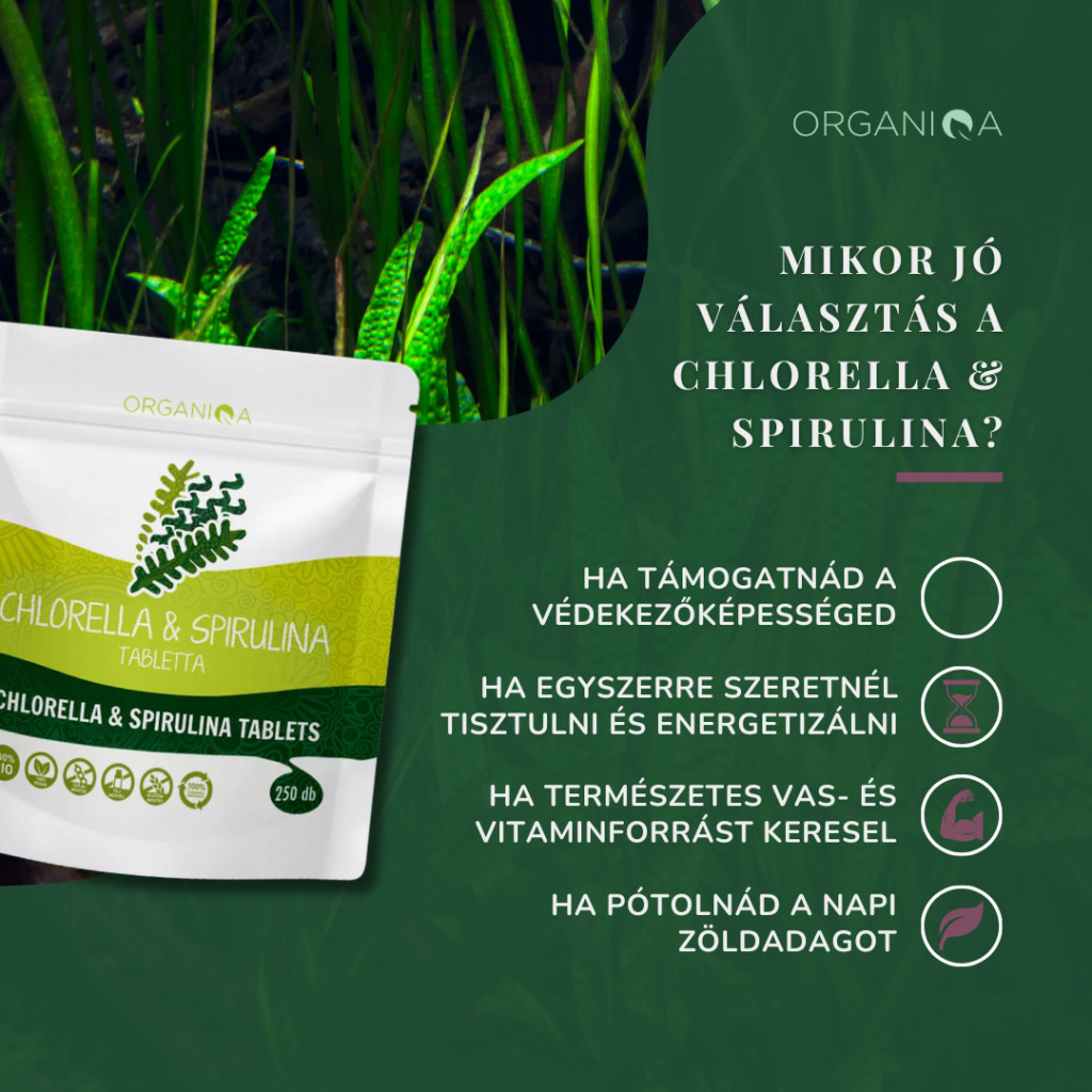 Mindkét algának nagyon magas a növényi fehérje tartalma (akár 60-65% is lehet). Ezek komplett fehérjék, ami azt jelenti, hogy biztosítják mind a 8 esszenciális aminosavat, a megfelelő arányban. További előny, hogy ezeket az aminosavakat könnyen emészthető formában nyújtják számunkra, így azok nem vesznek kárba az emésztés során. Enzimekben gazdagok, immunrendszerünk nagyszerű segítői.